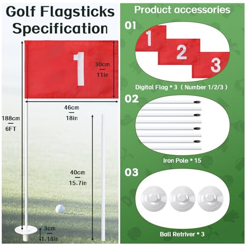 Golf Flag Poles for Putting Green, Golf Flagstick 6 FT for Yard, Golf Pin Flag for Driving Range, 3 Pack