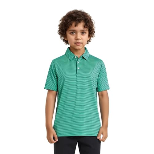 Golf Shirts for Boys Short Sleeve Moisture Wicking Dry Fit Performance Kids Youth Sport Striped Boys Polo Shirts