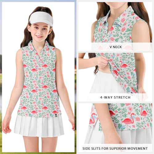 Soneven Girls Sleeveless Golf Polo Shirts V Neck Tennis Shirts Quick Dry Athletic Tank Tops for Age 5-16 Years