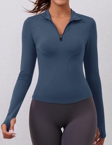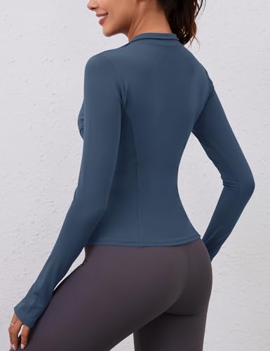 LOMON Womens Long Sleeve Workout Tops Quick Dry Quarter Zip Pullover Crop Yoga Athletic Slim Fit Shirts