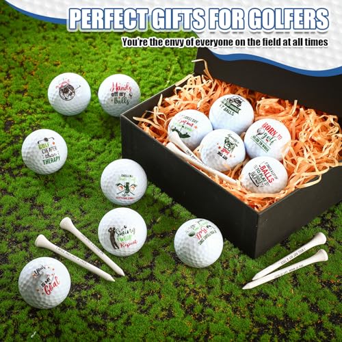 Funny Golf Ball Set: this funny golf balls gift set includes 12 golf balls and 6 golf tees; The funny printed designs make these golf balls ideal golf birthday gifts for golf lovers or as funny birthday or retirement gifts for men women