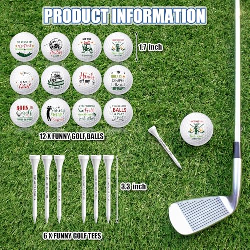 18 Pcs Funny Golf Balls Gifts Set 12 Humor Golf Balls and 6 Tees for Men Women Coworkers Employees Golfers Birthday Retirement