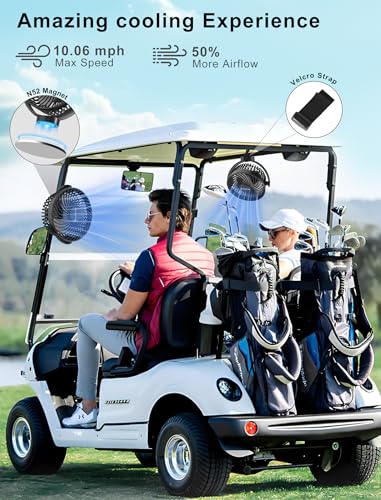 【Powerful Magnetic Base for Secure Attachment】This magnetic fan features a 1-inch big magnet that firmly adheres to any metal surface for effortless one-touch installation and removal. An additional velcro strap ensures double security, preventing falls during bumpy golf cart rides. A must-have golf cart accessory, allowing you to stay cool and comfortable on the course.