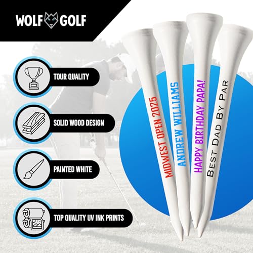 Material and Size: Our 2 3/4 inch Custom Golf Tees are made of wood, painted white and personalized in High Quality Ink
