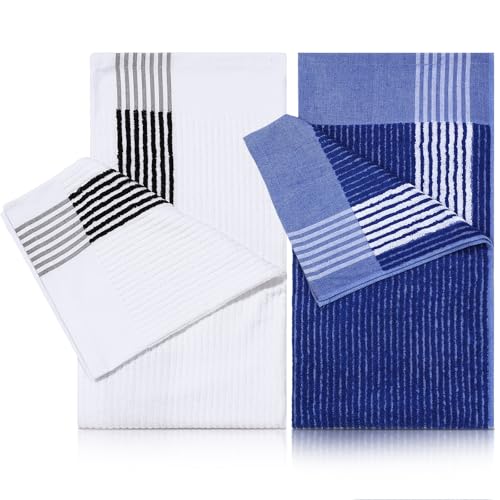Buryeah 2 Pieces Golf Towel 22 x 44 Inch Cotton Golf Caddy Towel Camping Large for Caddies Golfers Tour Players Club with Stripe, 2 Colors(Blue, White)