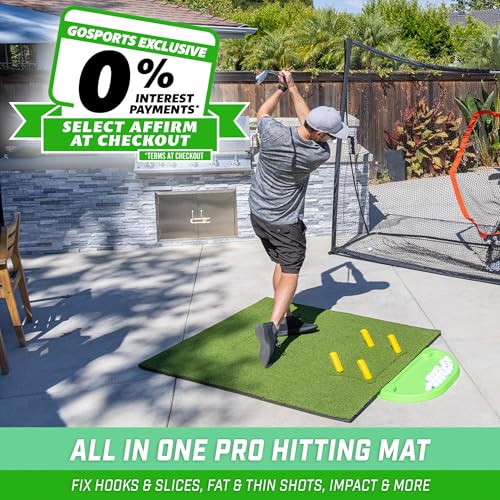 PRO GOLF MAT: Features interchangeable hitting mats for practicing key swing elements at home, fix hooks/slices, fat or thin shots and improve swing path, impact position, ball striking and more